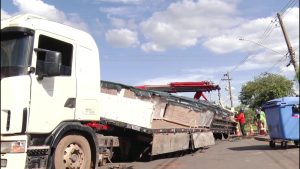 Asfalto cede e caminhão afunda em Santa Gertrudes