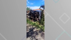 Eu Vi: Caminhão tomba em rua sem asfalto no bairro Alan Grey